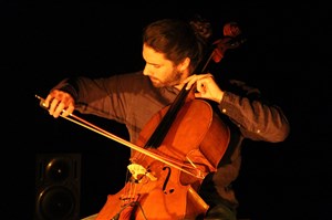 Public en gradin avec Paul Colomb qui a développé le projet Hybride autour du violoncelle et de l'électronique et propose au public un véritable voyage sonore où se mêlent des influences électroniques, classiques qui glissent vers des musiques du monde (Afrique, Inde notamment), actuelles ou improvisées, se mêlant ou se succédant imperceptiblement.