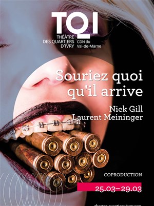 Décidément, l'école anglaise contemporaine de théâtre regorge d'auteurs de talents. Je ne connaissais pas Nick Gill, dont nous est proposée la première pièce, Mirror Teeth, titre que Laurent Meininger a heureusement traduit par " Souriez quoi qu'il arrive " (l'éditeur français propose le pas très joli " Dents miroir "). Le metteur en scène tire toute la substantifique moelle de l'écriture de Nick Gill, donnant un relief particulier et désopilant à l'empilement de banalités alignées par les personnages - ou : comment des phrases apparemment creuses recèlent un sous-texte absolument effroyable dont l'exposition sous nos yeux dénonce avec férocité les travers d'une société raciste et hypocrite. Voilà une pièce de Nick Gill digne des meilleurs textes d'un Dennis Kelly, sublimée par une mise en scène et un jeu dont les excès ne sont que preuve de justesse, comme pour toute bonne farce digne de ce nom, a fortiori une farce caustique et tragique.
