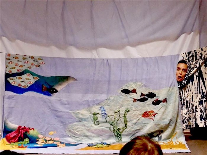 Un spectacle pétillant aux allures de conte initiatique dans lequel la comédienne interprète chaque personnage, du crabe à la crevette, du poulpe à la méduse. Elle dessine grâce au décor un milieu sous-marin rempli de surprises et invite les enfants à y plonger. Une ode à l'imaginaire, à l'enfance et aux baleines.