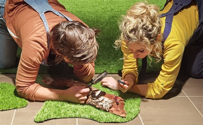 Sous mes pieds invite le public à plonger dans la vie souterraine et aussi aérienne... des petites bêtes ! Vers de terre et libellules en sont les vedettes !