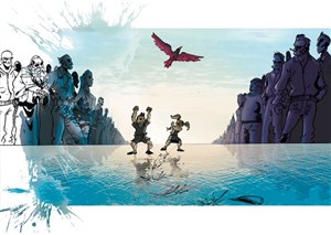 Le dialogue s'engage et avec lui, le conflit. Pourtant les deux enfants se lient d'amitié. Seront-ils assez sages - ou assez ignorants - pour faire fi du passé qui les divisent ? Laisseront-ils l'histoire se répéter ? Auront-ils le temps de "chef-d'oeuvrer" leur monde avant que le grand déluge de la folie des hommes n'engloutisse tout ?