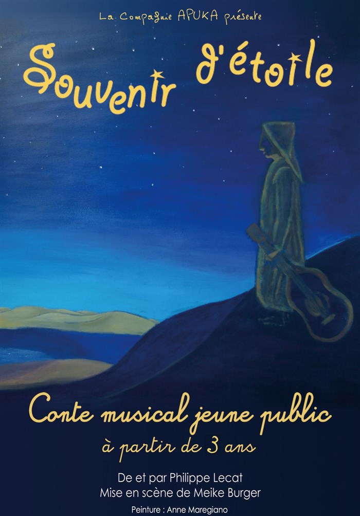un conte musical drôle et poétique pour un comédien, une guitare, un violon, une étoile, quelques chansons et un peu de fantaisie.