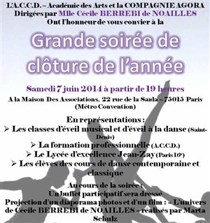 A cette occasion, les élèves de toutes les classes d'éveil à la danse, d'éveil musical, danse classique et contemporaine, formation professionnelle, classe préparatoire, élèves du lycée Jean Zay présenteront le travail de l'année. Au cours de la soirée, en plus des différentes représentations, vous assisterez à des projections de vidéos de danse et pourrez aussi inscrire vos enfants pour l'été de la danse ainsi que pour les cours réguliers de l'année 2014-2015.