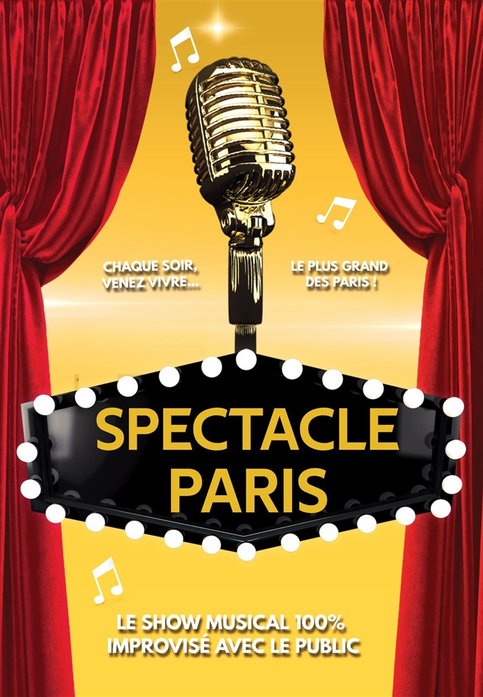 Dans "spectacle paris", assistez au plus grand des paris ! chaque soir, un tout nouveau spectacle est improvisé avec l'aide du public. le public impose des mots qui seront utilisés dans le spectacle. piano, chant, humour, instruments, interactions avec le public, vont se mélanger pour former une aventure incroyable, dont l'histoire, les paroles et les mélodies seront entièrement improvisées.