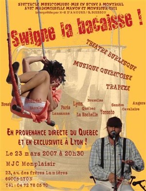 Spectacle musicomique, alliant musique traditionnelle et actuelle québécoise, théâtre burlesque, trapèze, acrobaties sur boule d'équilibre, etc... Spectacle mis en scène à Montréal, et joué de nombreuse fois au Québec, en France, Belgique, Suisse, Espagne... Unique représentation à Lyon.