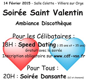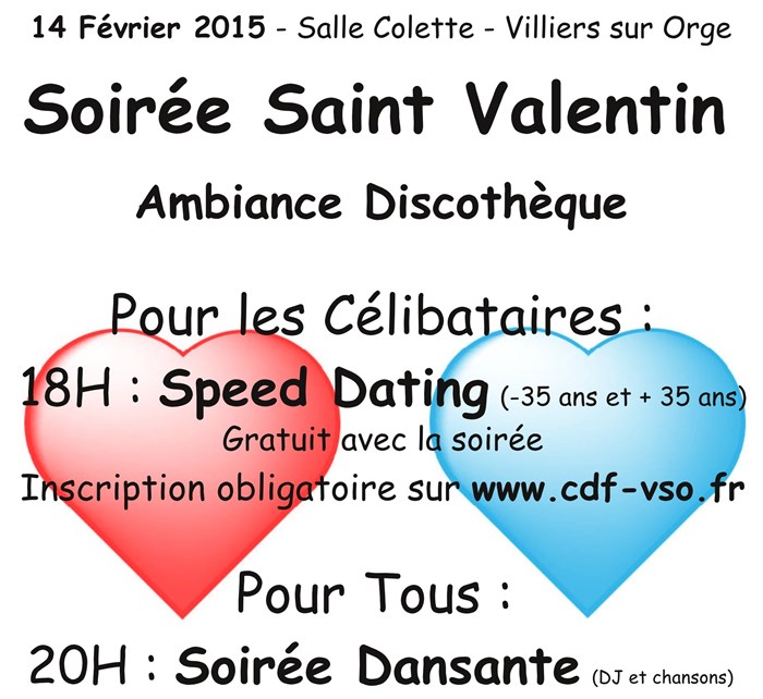 Le comité des fêtes de Villiers organise une soirée pour la saint valentin avec des actions spécialement célibataire. Tout le monde est le bienvenu.