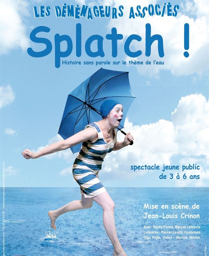 Par la magie de la lumière et de la vidéo, deux petits clowns à la Buster Keaton, la tête dans les nuages et les pieds dans l'eau, pataugent, arrosent des parapluies qui poussent comme des fleurs, courent sous une pluie battante et tentent de saisir à pleines mains un peu de cette eau qui ruisselle, qui goutte, qui murmure, qui chante...