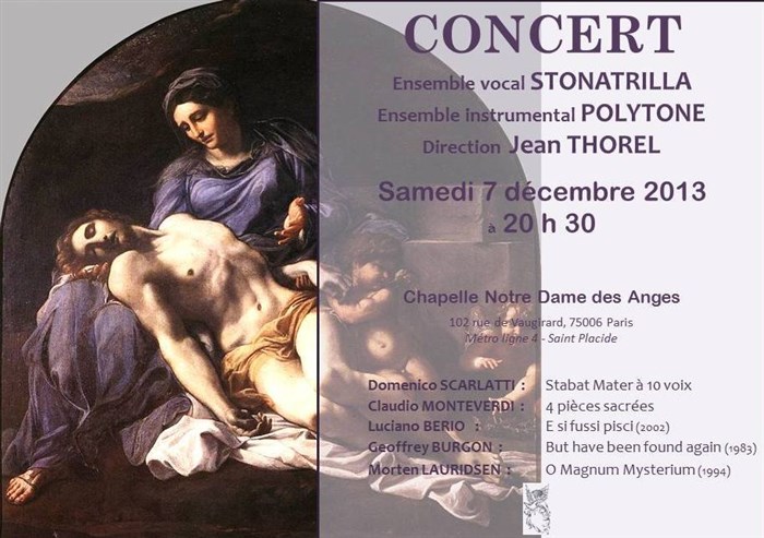 Stabat Mater à 10 (D.Scarlatti), pièces de Monteverdi, Lauridsen, Burgon ...