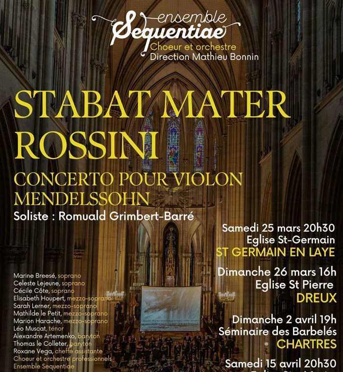 L’événement Stabat Mater de Rossini et concerto pour violon Mendelssohn de type Musique Sacrée, organisé ici :
