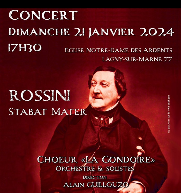 Concert avec orchestre et solistes pour ce Stabat Mater de Rossini en l'église de Notre Dame des Ardents et sous la direction d'Alain Guillouzo.