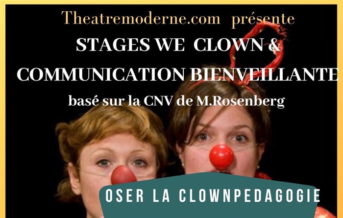 Théâtre Moderne proposent des stages Weekend de clown et communication bienveillante pour toutes les personnes qui souhaitent évoluer clownesquement et humainement à travers l'art de se découvrir sous un angle décaler, léger et pertinent Le clown de théâtre permet de développer sa créativité, de s'ouvrir à soi et de se libérer. Il permet également de prendre plaisir avec le regard des autres, de surmonter la peur du public. Le stage clown et communication bienveillante vous permet d'oser vous exprimer et de savoir écouter.