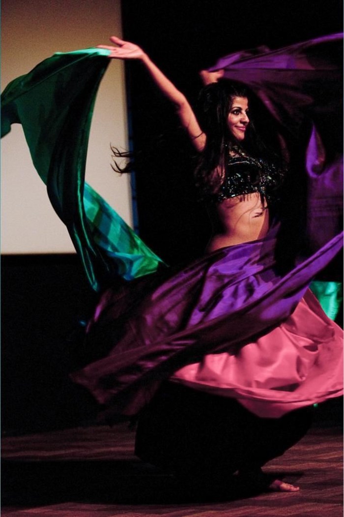 Venez découvrir le voile en danse orientale. Début du stage avec un échauffement et étirement. D'abord des mouvements simples, puis l'ajout du voile.