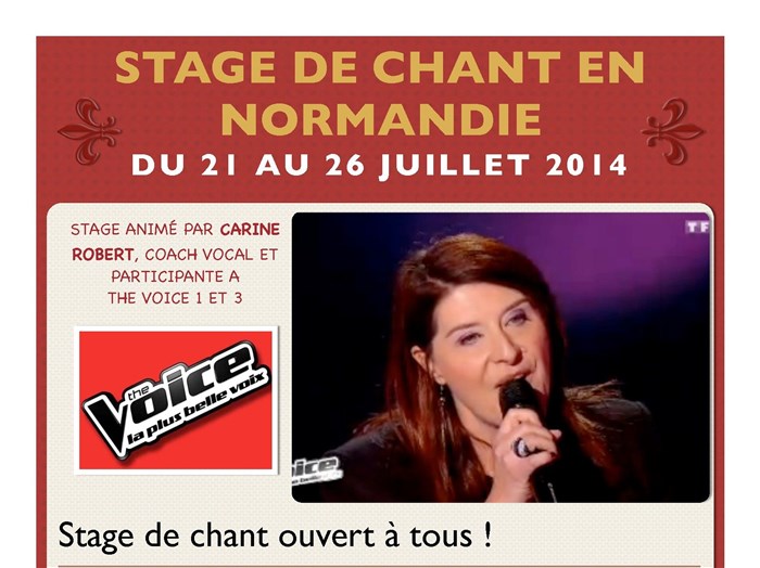 Stage de chant ouvert à tous animé par Carine Robert, coach vocal et participante à the voice 1 et 3.