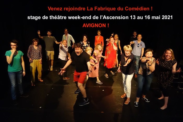 Venez vous exprimer avec La Fabrique du Comédien lors de ce stage de théâtre à Avignon durant le week-end de l'Ascension en mai 2021. Dans un joli théâtre, vous pourrez vous exprimer pleinement sur scène, développez votre créativité, votre répartie, être plus à l'aise dans la prise de parole en public , et améliorer la justesse de votre jeu, grâce à ce stage d'impro théâtrale. Excellente ambiance : chaleureuse et bienveillante.