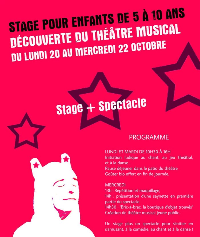 L’événement Stage découverte du théâtre musical de type Cours Danse, Théâtre, Clown, Chant, organisé ici :
