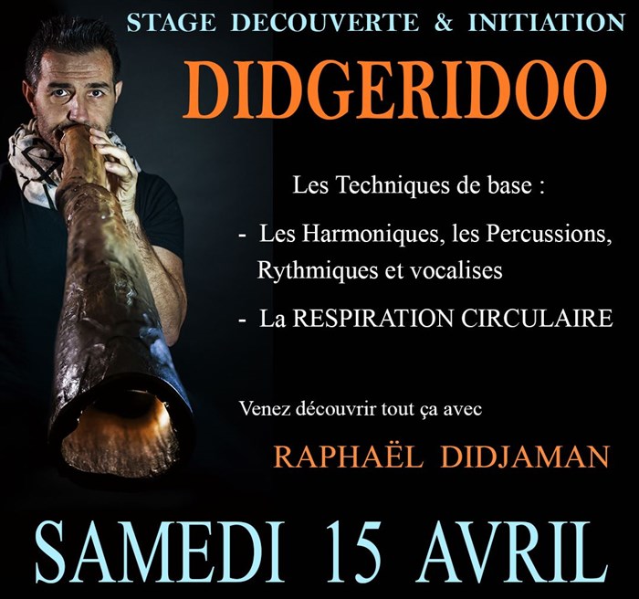 Venez découvrir le Didgeridoo ou perfectionner votre technique de jeu, vous initier à la mystérieuse respiration circulaire avec Raphaël Didjaman !