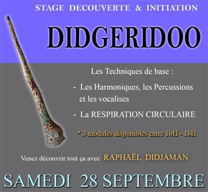 Venez découvrir le Didgeridoo ou perfectionner votre technique de jeu, vous initier à la mystérieuse respiration circulaire avec Raphaël Didjaman !