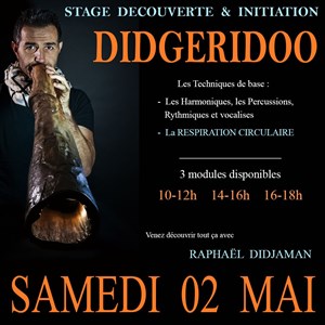 Venez découvrir le Didgeridoo ou perfectionner votre technique de jeu, vous initier à la mystérieuse respiration circulaire avec Raphaël Didjaman !