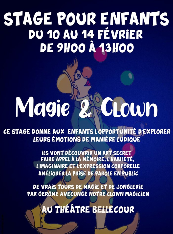 Stage Magie/clown 5jours pour enfant, toutes les séances