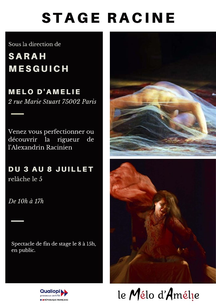 Britannicus, Bérénice, Andromaque, de Racine, il s'agira, dans des scènes que nous choisirons ensemble, de mettre en tension, la rigueur racinienne, la célébration de la langue et son implication charnelle: dire à travers le "c'était écrit", le présent." Et ainsi, voir comment s'articulent contraintes et liberté."