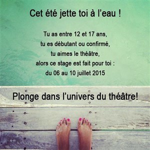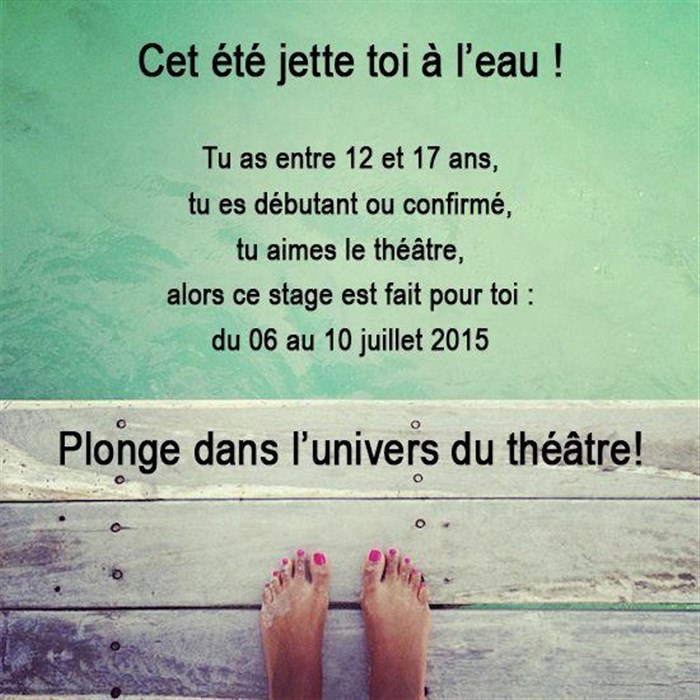 le stage s'effectuera du 06/07/23015 au 10/07/2015 de 10h à 17h (prévoir un repas froid) et s'achèvera par une présentation au Théo-Théâtre.