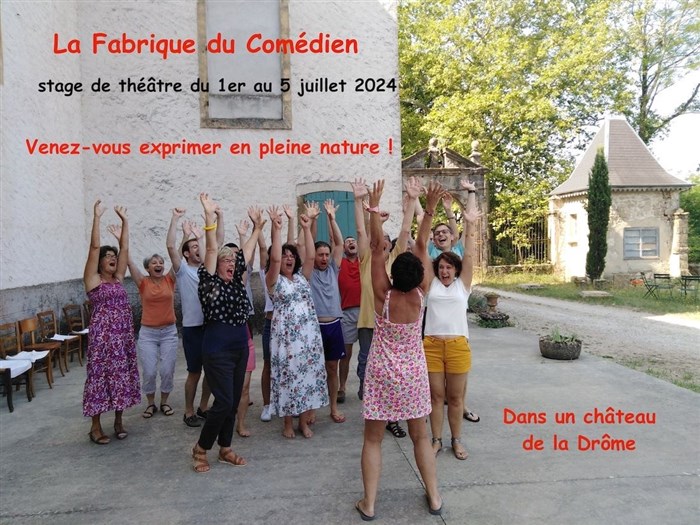 La Fabrique du Comédien vous propose un stage de théâtre d'été, en juillet, sur le thème des émotions. Venez vous exprimer, vous libérer et vous épanouir sur scène et améliorer la justesse de votre jeu. Environnement et ambiance exceptionnels : le stage a lieu dans un château près de Valence (Sud-Est). Thème passionnant : comment gérer et exprimer ses émotions grâce au théâtre d'improvisation, et interpréter avec justesse un personnage.