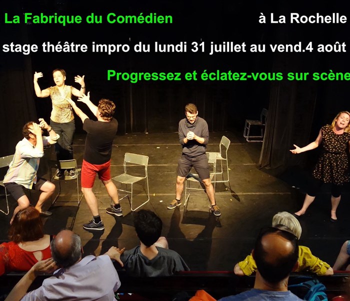 La Fabrique du Comédien organise un très beau stage de théâtre sur le thème de l'improvisation théâtrale en août à La Rochelle, adultes tous niveaux.