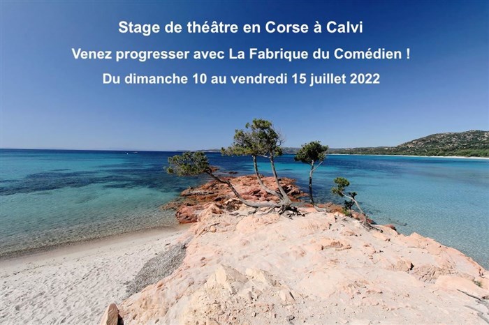 La Fabrique du Comédien organise un stage de théâtre en Corse durant une semaine en Juillet, pour débutants et confirmés, mêlant textes et impros.