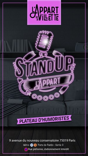 L’événement Stand Up Appart de type Plateau d'humoristes, organisé ici : L'Appart de la Villette -