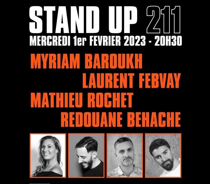 Stand Up au 211 avec 4 humoristes, le mercredi, deux fois par mois. Le line up vous est dévoilé deux semaines à l'avance.