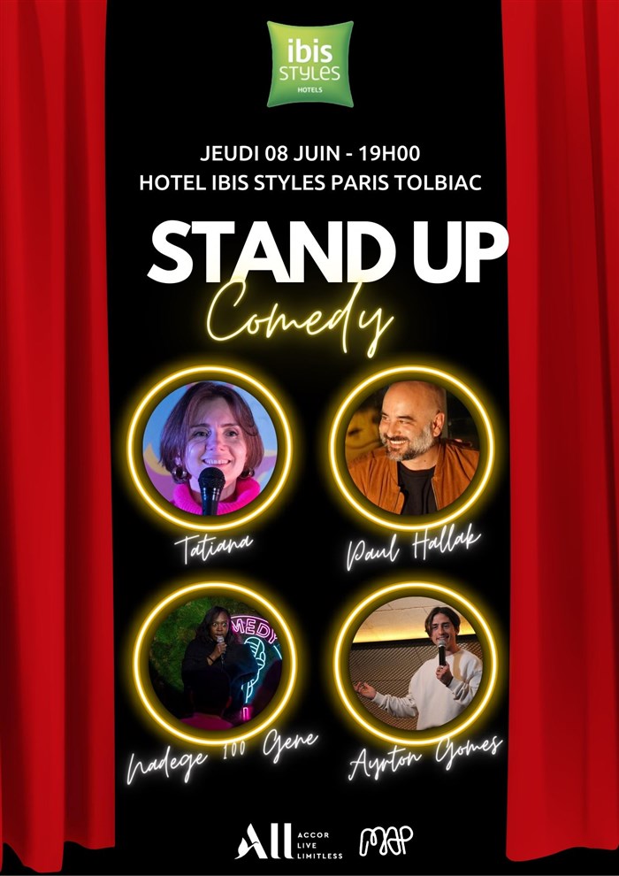 Après le succès des deux premières éditions, l'hôtel Ibis Styles Paris Tolbiac poursuit l'aventure Stand Up et vous accueille pour un nouveau plateau d'humoristes à tomber !