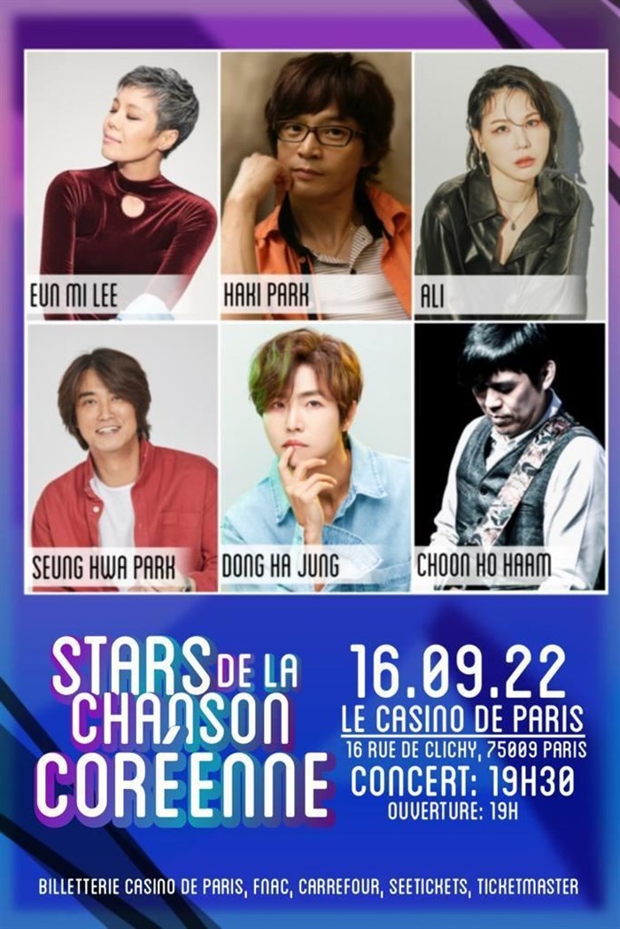 Le 16 septembre 2022, au Casino de Paris, c'est une invitation pour un voyage culturel unique qui vous est adressée avec la présence de 6 grandes stars de la Chanson coréenne, toutes présentes pour la première fois en France.