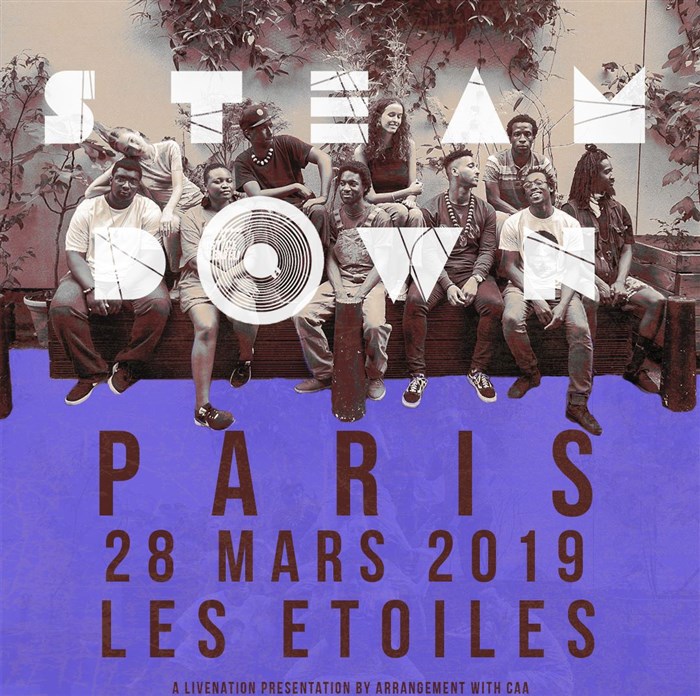 Faisant tout son possible pour créer une expérience immersive, Steam Down est renforcé par l'énergie débordante d'une famille élargie qui est régulièrement présente pour envoyer de bonnes ondes et apporter son soutien. Ensemble, les musiciens et tous ceux qui les rejoignent explorent le passé, présent, et future. C'est un voyage à ne pas manquer !