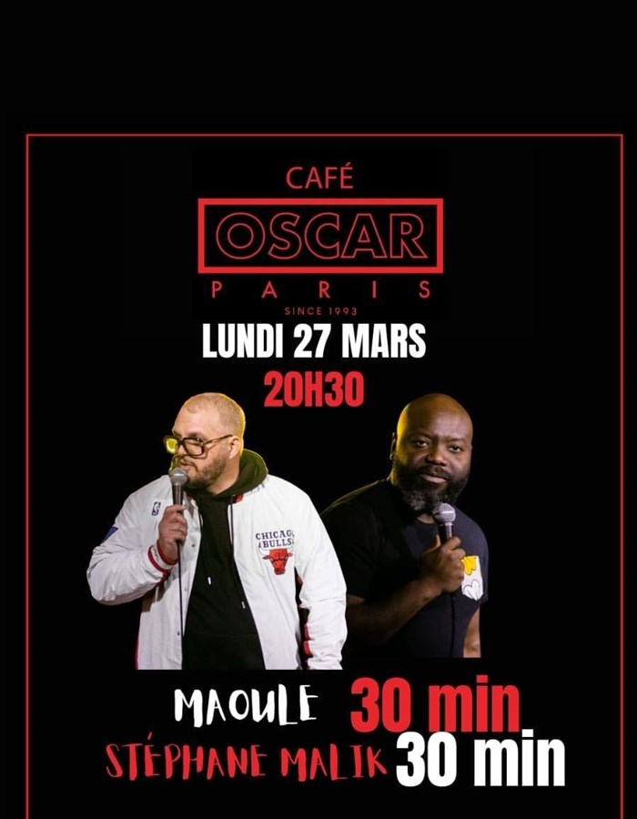 Stéphane Malik et Maoule, deux humoristes qui officient également en tant que MC du café Oscar, se partagent l'affiche pendant 1 heure.