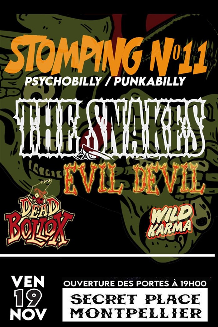 L’événement Stomping n°11 J1 : The Snakes + Evil Devil + Dead Bollox + Wild Karma + DJ de type Concerts Divers, organisé ici :