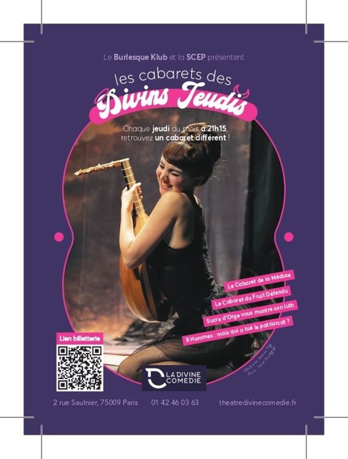 Découvrez aussi les autres spectacles des Divins jeudis : Le Cabaret de la Méduse, Le Cabaret du Fruit Défendu et 8 Hommes.