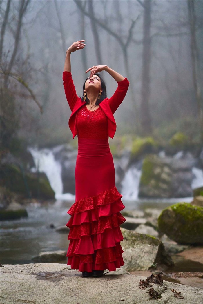 D'origine brésilienne, elle est aussi "una flamenca" et a également baigné dans les danses modernes et contemporaines. Réunir ces univers, c'est unir les diverses parties d'elle-même.