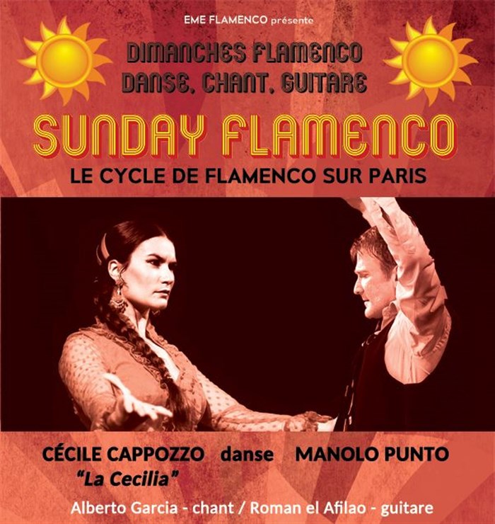 Concept des Sunday Flamenco : regrouper quatre artistes de flamenco (danse, chant et guitare) le temps d'une après midi afin de retrouver l'esprit et la force des cafés chantant et tablaos andalous.