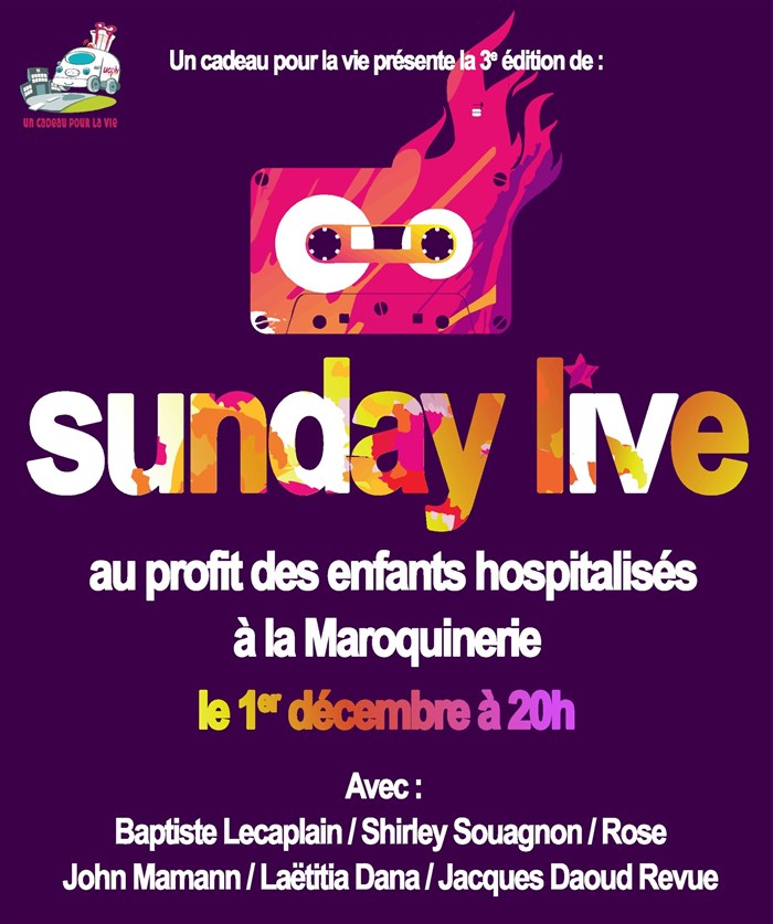 Un cadeau pour la vie, présente la 3eme édition de Sunday Live au profit des enfants hospitalisés , à la Maroquinerie.
