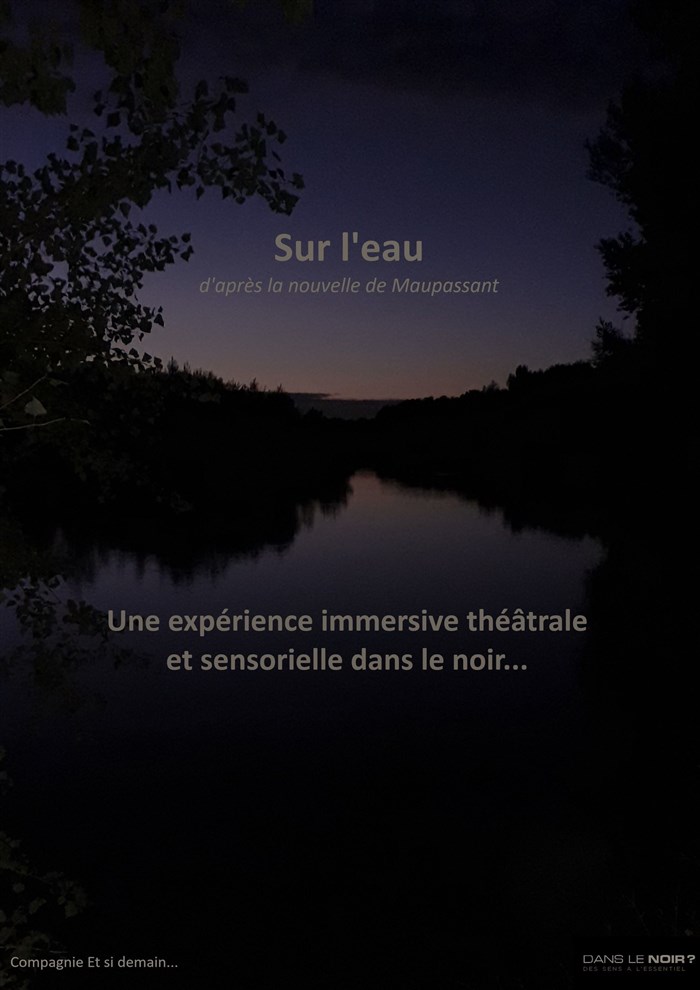 "Sur l'eau", spectacle d'après la nouvelle de Maupassant. Au sein du restaurant "Dans le Noir ?", laissez-vous aller à la redécouverte de tous vos sens, l'espace d'un voyage en canot, basculez au coeur de la nouvelle de Maupassant... Plongé dans le noir total, redécouvrez le goût grâce au chef pour une pause gourmande et sucrée qui vous conduira peu à peu vers la nouvelle fantastique de Maupassant et une exploration complète de tous vos autres sens... Vous vous retrouverez la nuit, en bateau, coincés sur une rivière lugubre, en proie à toutes les fantasmagories... Le travail sur les sons, le toucher, les odeurs vous plongera au plus près de toutes vos sensations. Appréhendez une autre réalité en perdant vos repères pour vivre une aventure dont vous deviendrez le protagoniste.