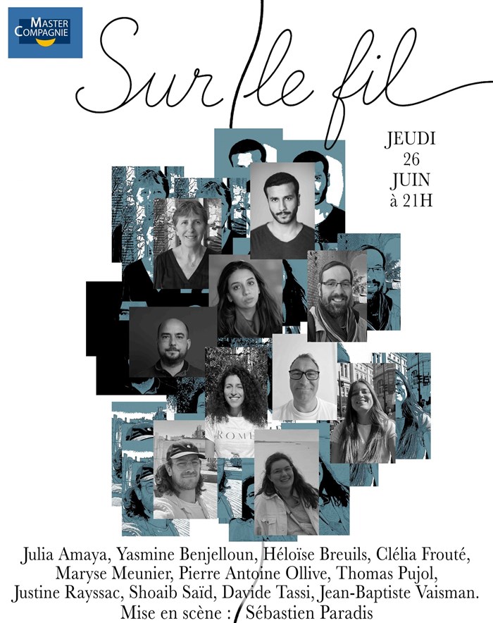 Les comédiens de la Master compagnie présentent Sur le fil : un moment suspendu où les personnages, comme les émotions se frôlent, s'opposent, s'entrelacent.