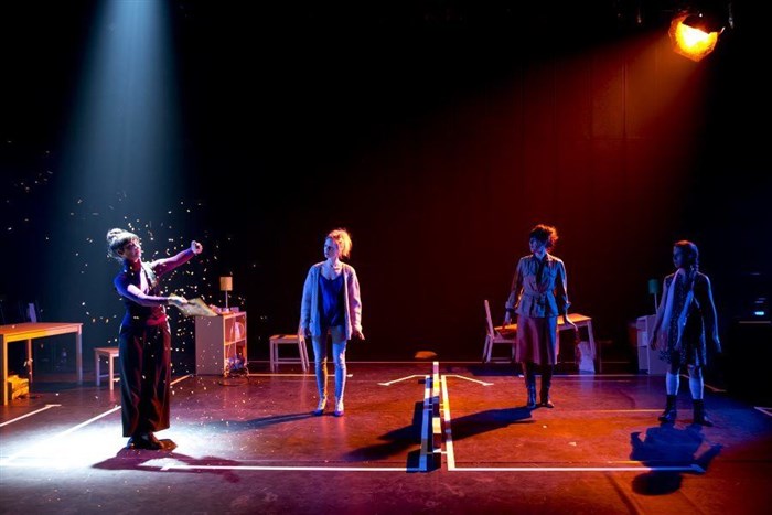 Quatuor féministe Une femme assise solitaire et un peu goudou sur les bords, une voisine qui se prostitue pour subvenir à ses besoins, une ado qui se râpe les jambes à l'épluche légumes pour devenir la " Mère Thérèsa des claquettes ", une femme armée, épouse de forain mais handicapée de la gâchette.... Cette comédie, chantée de bout en bout, met en musique l'histoire souvent misérable de ces quatre femmes. A travers plusieurs scènes déjantées, on découvre leurs déceptions, leurs rêves, leurs fêlures... Après la tragédie on retrouve finalement l'espoir et l'optimisme car on peut toujours renaître de ses cendres. Bel accompagnement musical au piano et impeccable Nicole Croisille, narratrice en voix off. Un spectacle original, façon Michel Legrand/Jacques Demy mais sous acide....😉