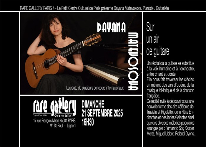 Tu veux savoir ce qu’ont pensé les spectateurs et la presse de cet événement : Sur un air de guitare avec Dayana Matevosova - Rare Gallery ? Découvre leurs avis éclairés et prépare-toi à vivre un moment d’exception à ton tour en réservant tes places !
