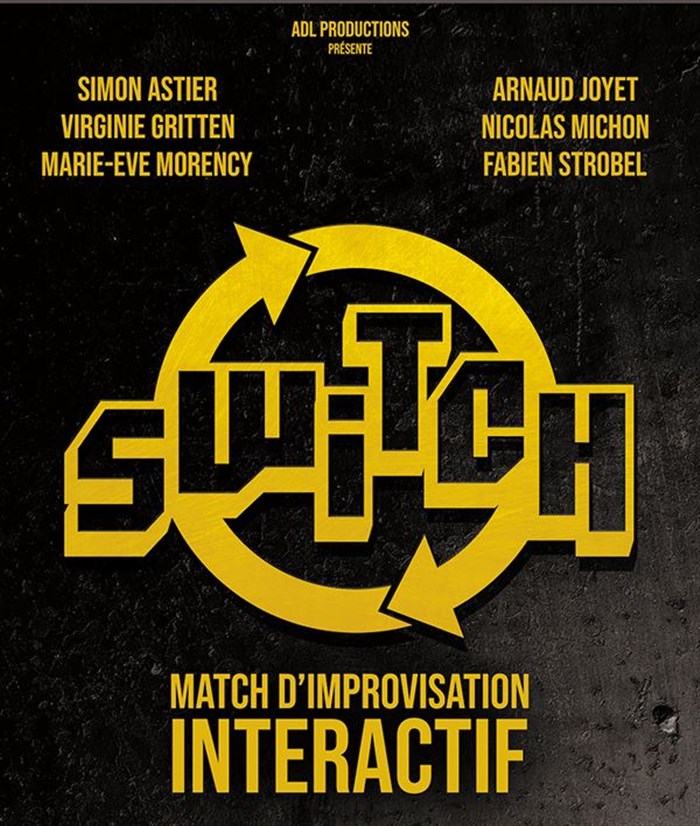 Après 27 représentations avec + de 30.000 spectateurs (dont 2 Olympia et 3 cité des Congrès de Nantes) du Match Hero Corp contre Montréal, voici Switch, un match d'improvisation interactif inédit dans lequel le public a les commandes.