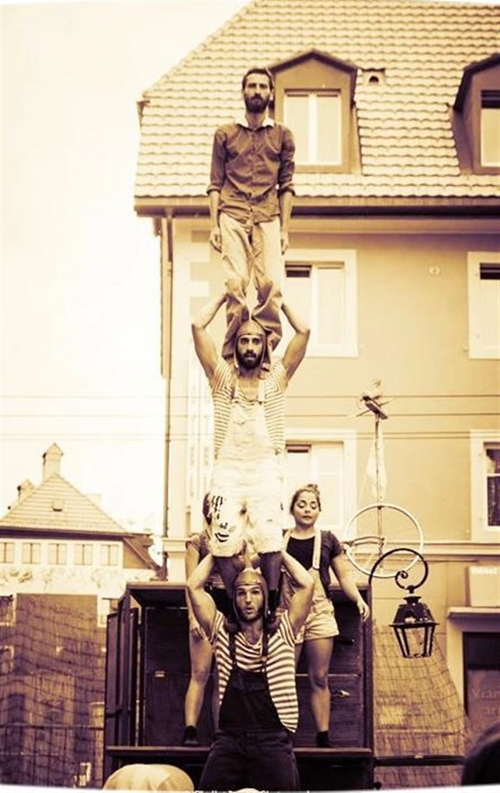"Système D" est un spectacle de cirque tout public mêlant prouesse et joie de vivre. S'appuyant sur la technique des portées acrobatiques, ces personnages, hauts en couleurs, revisitent des instants du quotidien.