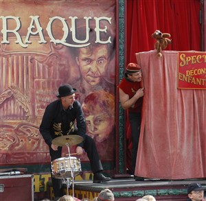 Pendant une heure, ce spectacle familial à l'humour incisif revisite tous les clichés des contes de fées. Humanistes, agitateurs publics, donneurs de rêve, magiciens de l'imaginaire, les frères Burattini appartiennent à la grande famille du théâtre forain burlesque.