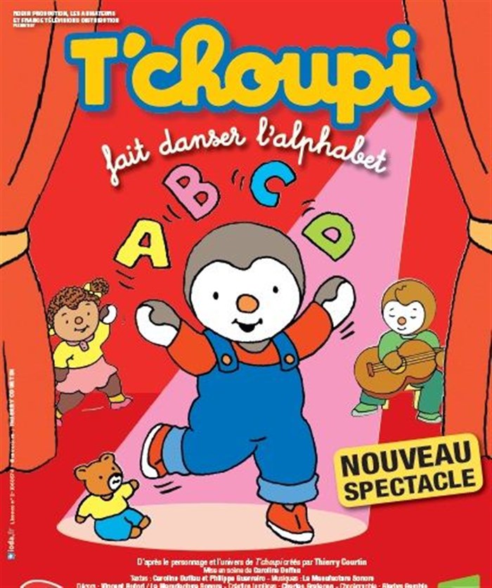 Après le succès de T'Choupi fait son spectacle, nous retrouvons le célèbre personnage de Thierry Courtin dans un nouveau spectacle musical, T'Choupi fait danser l'alphabet.