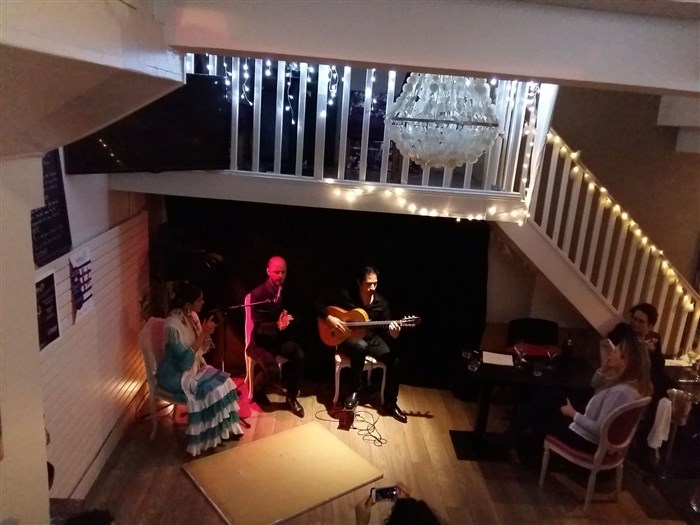 Par des artistes talentueux, passionnés, avec l'envie de partager leur art. Caves voûtées en pierre, éclairage intimiste, les talons de la danseuse qui claquent sur le parquet, un formidable guitariste, chanteur et palmas d'exception: je recommande et reviendrai!!