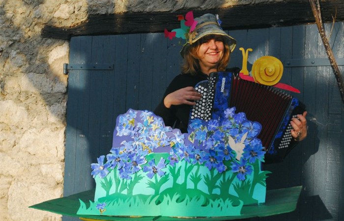 par la compagnie Carlotatralala Pop up, Marionnettes sur table, théâtre et musique accordéon