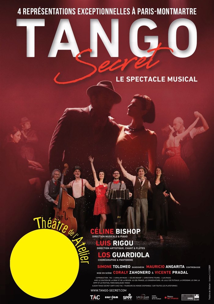 Tango Secret est un spectacle d'une grande force expressive, où les tangos des origines se mêlent aux milongas et autres valses criollos qui ont construit la légende du Tango. Céline Bishop, Luis Rigou et Los Guardiola rendent ainsi un hommage vivant, sensible et sincère, à cette musique de l'âme qui nous éblouit.